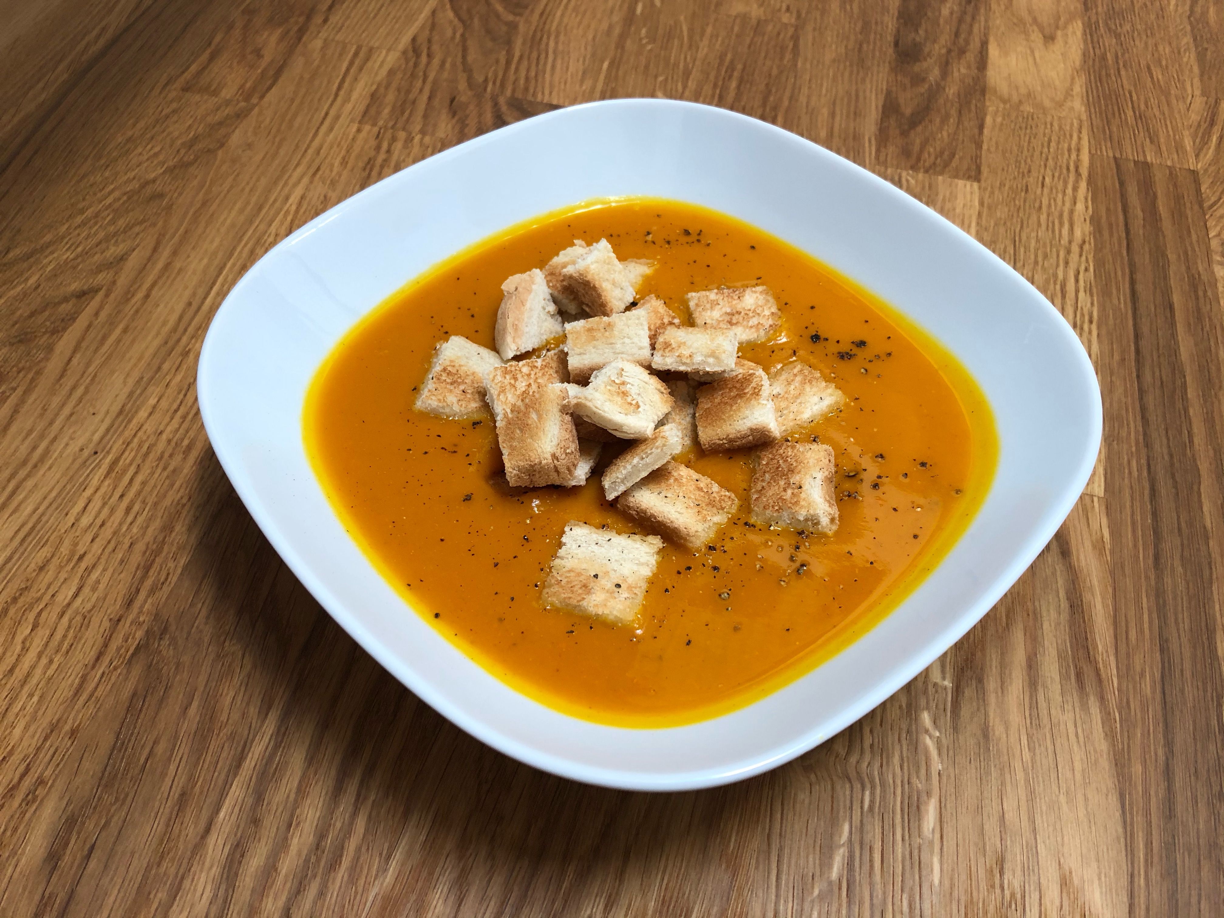 - Máslo rozpusťte v hrnci, poprašte kari a lehce zasmahněte