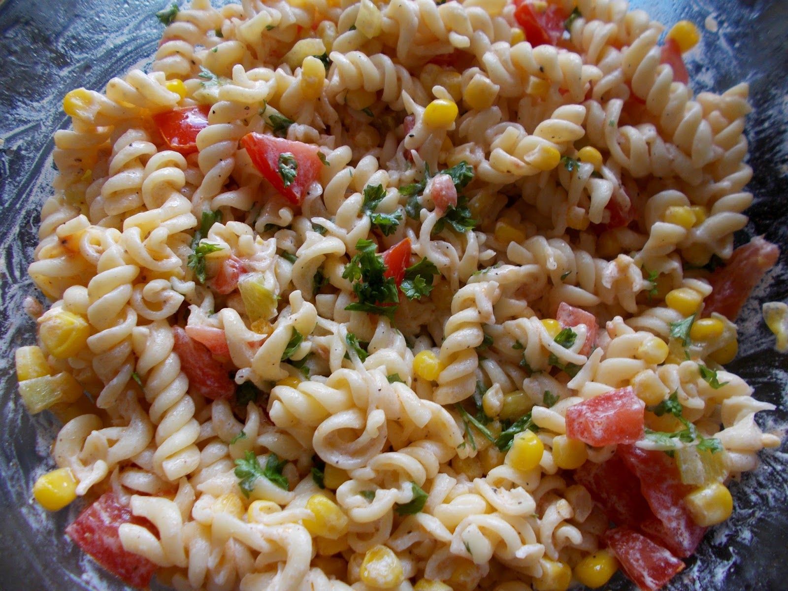 - Uvaříme si těstoviny, které poté smícháme s připravenou směsí masa a cibule, bílým jogurtem, kukuřicí, rajčetem a jalapeños papričkami.
