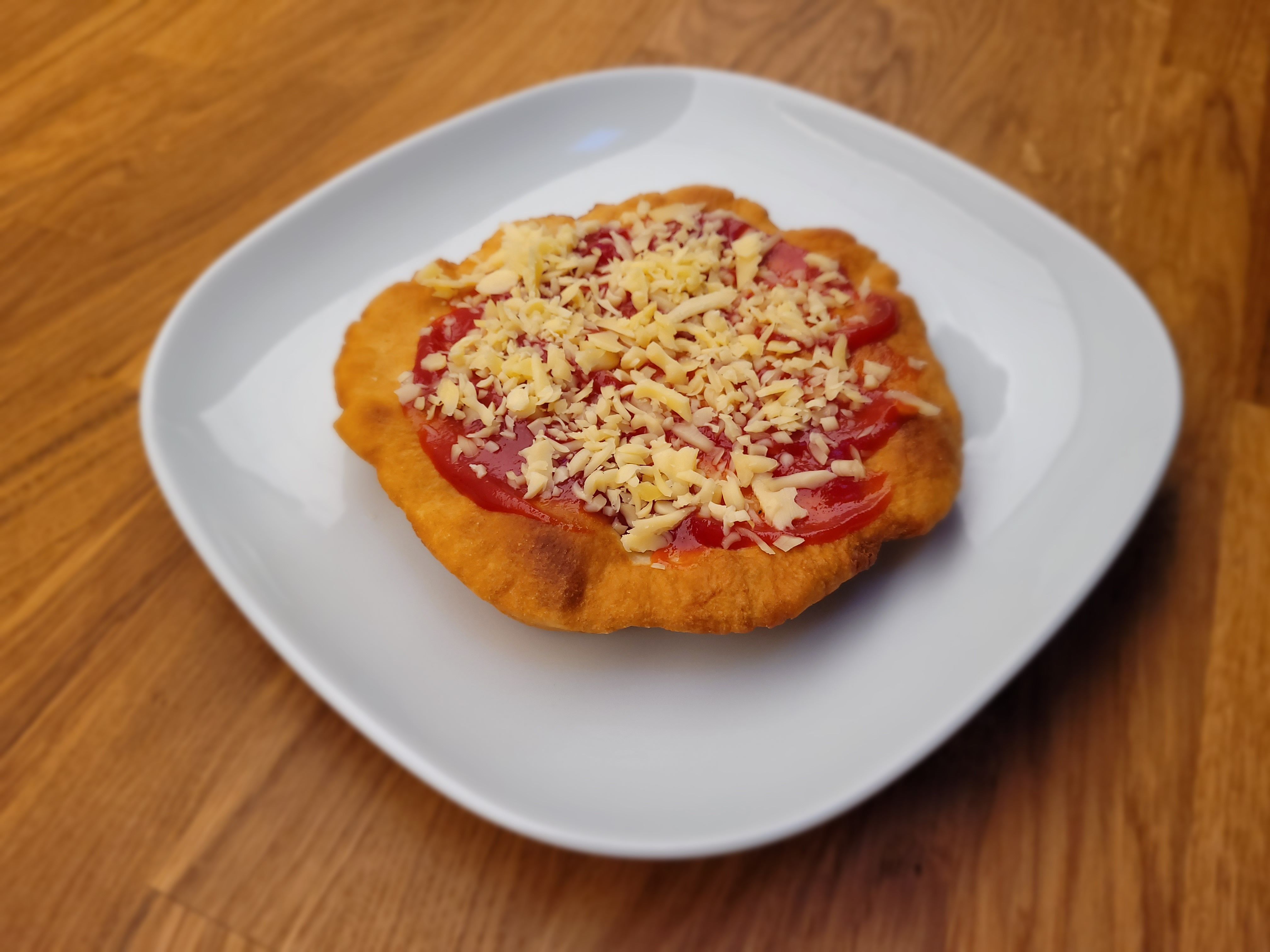 - Smažíme ve vyšší vrstvě oleje, tak aby byla půlka langoše ponořená