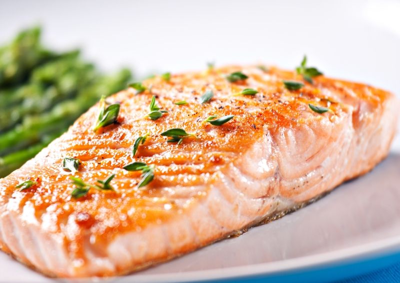 - Na trošce rozpáleného olivového oleje vložíme lososa kůží dolů