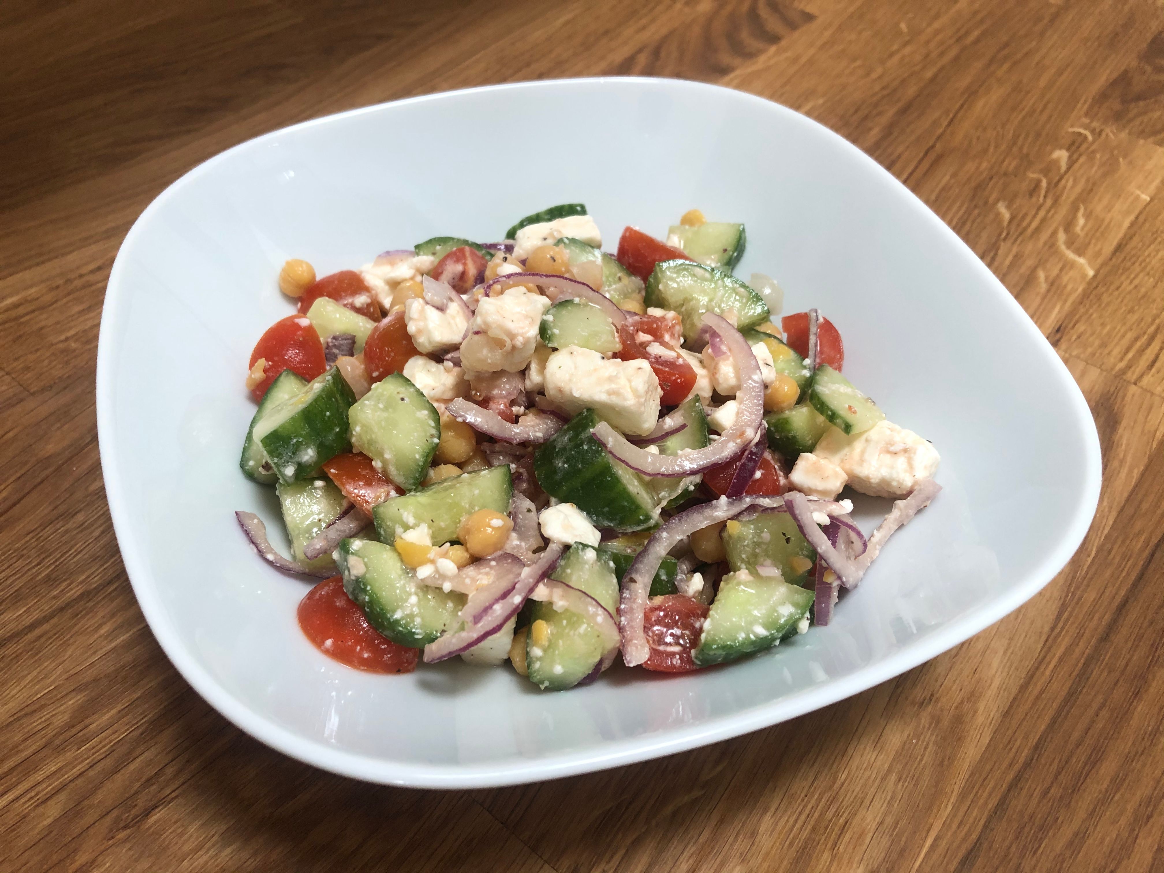 Řecký salát s cizrnouDoba přípravy 35 min ŠtítkysalátvegetariánskéIngrediencePočet porcí1kssalátová okurka16kscherry rajčata0,5ksčervená cibule200gcizrna200gfeta0,5kscitronsůlpepřPostupVše nakrájíme, smícháme, vymačkáme šťávu z citronu, osolíme a opepříme.Autor:KubíkNaposledy upraveno:24. 3. 2021