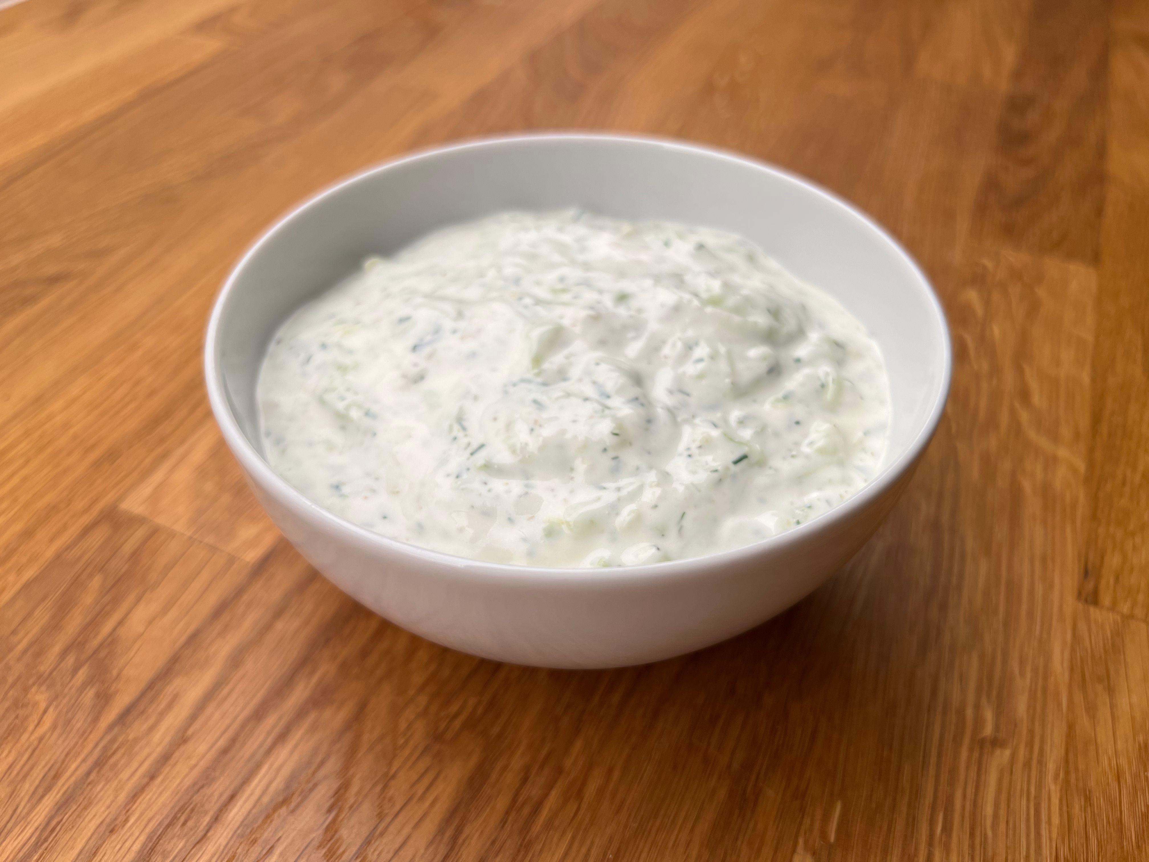 - Vymačkanou okurku smícháme s jogurtem a olivovým olejem