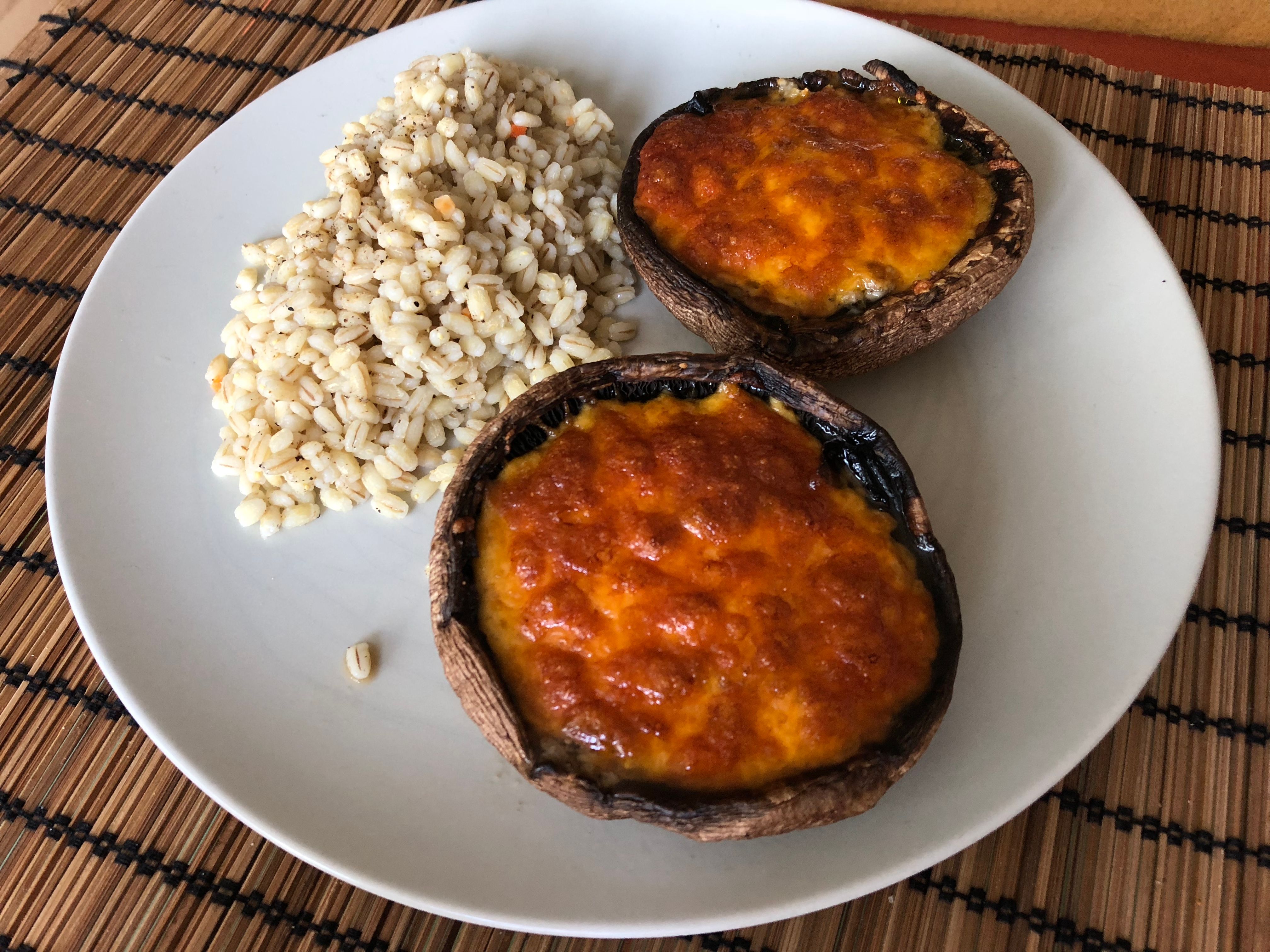 Vyřízněte z žampionů nožičky. Klobouky zevnitř osolte, opepřete, pomažte špetkou utřeného česneku. Naplňte strouhaným sýrem. Skvělý je čedar, ale dobře funguje i niva nebo gouda.