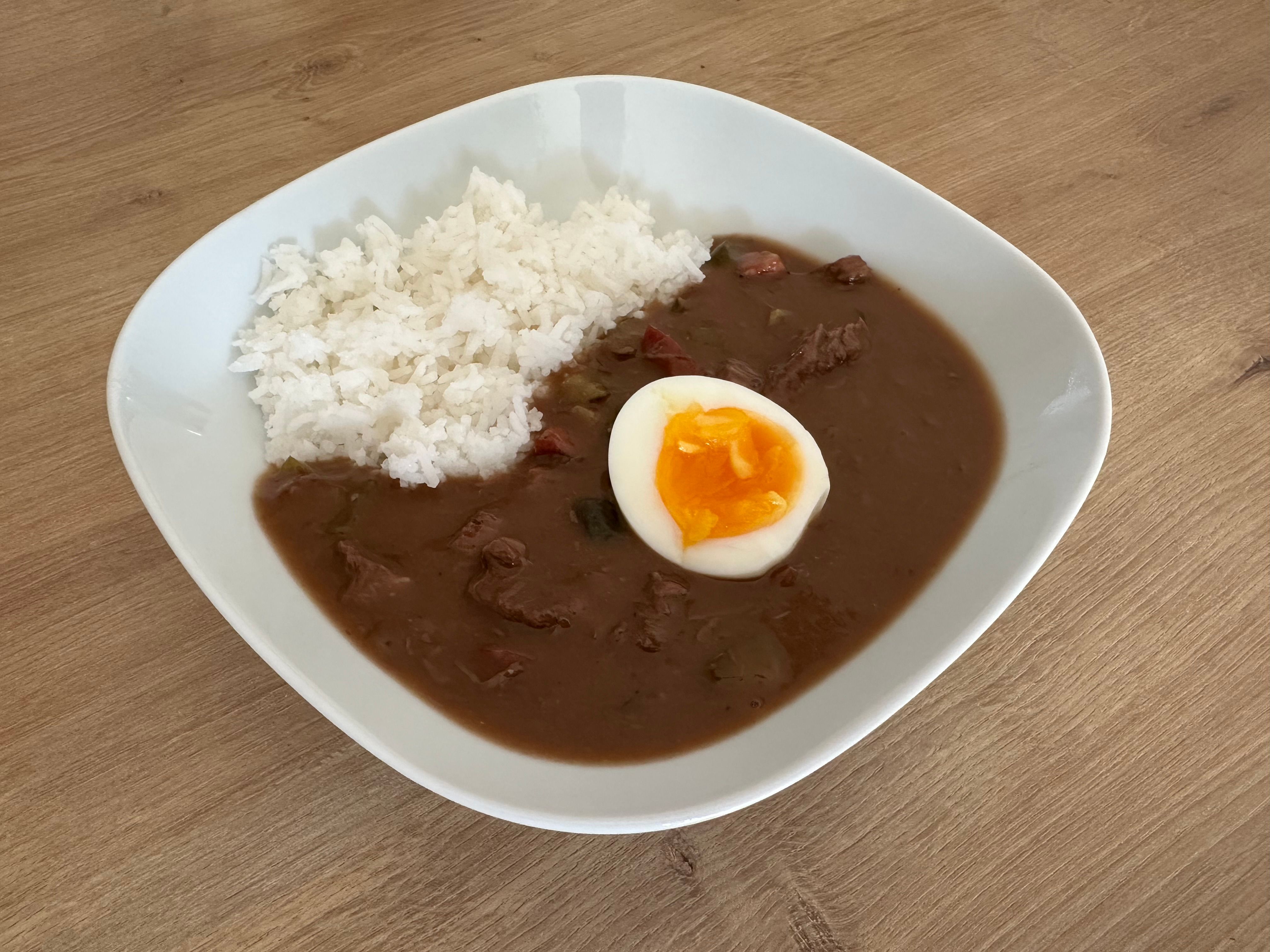 - Podáváme s vařeným vejcem (8 minut) a rýží